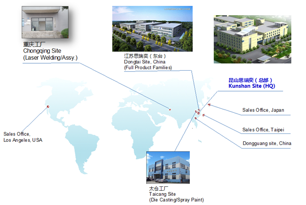 思瑞奕電子有限公司成立于2010年10月,注冊資金7500萬人民幣,總部位于江蘇省昆山市,在重慶、江蘇東臺、江蘇太倉設有分廠,公司于2011年通過ISO9001/ISO14001認證,2013年通過高新技術(shù)企業(yè)和TS16949(IATF)體系認定,2016年先后通過知識產(chǎn)權(quán)管理體系認證、安全生產(chǎn)標準化認證,2017年獲頒江蘇省民營科技企業(yè)、2018年先后獲得蘇州市人民政府認定企業(yè)技術(shù)中心、科技部認定中小型科技企業(yè)、江蘇省最具成長性高科技企業(yè)、2020年獲得江蘇省人民政府認定企業(yè)技術(shù)中心、2021年獲得蘇州市瞪羚計劃入庫企業(yè)、江蘇省省級工程技術(shù)研究中心、江蘇省專精特新中小企業(yè)等榮譽稱號......